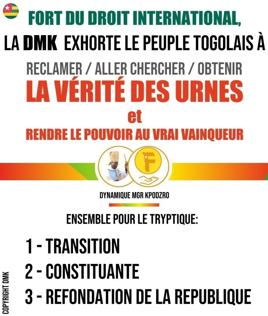 Togo-Présidentielle 2020 : Des Togolais ansi que la DMK sous l’égide du Patriche de la Nation Mgr Kpodzro « exigent la vérité des urnes pour que cesse l’illégitimité du pouvoir »